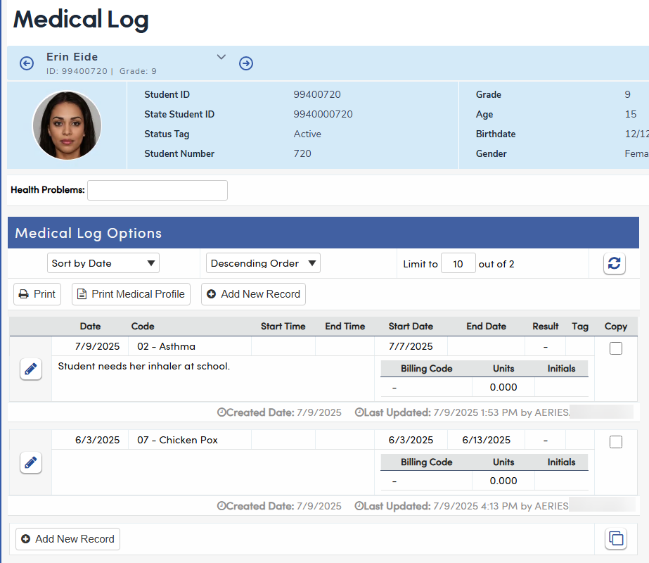 To edit an existing Medical Log record, click the mouse on the Edit icon.