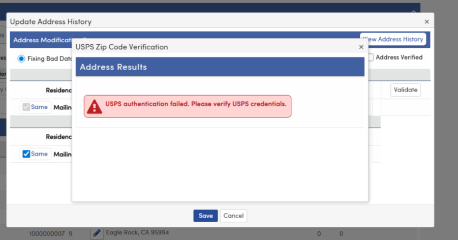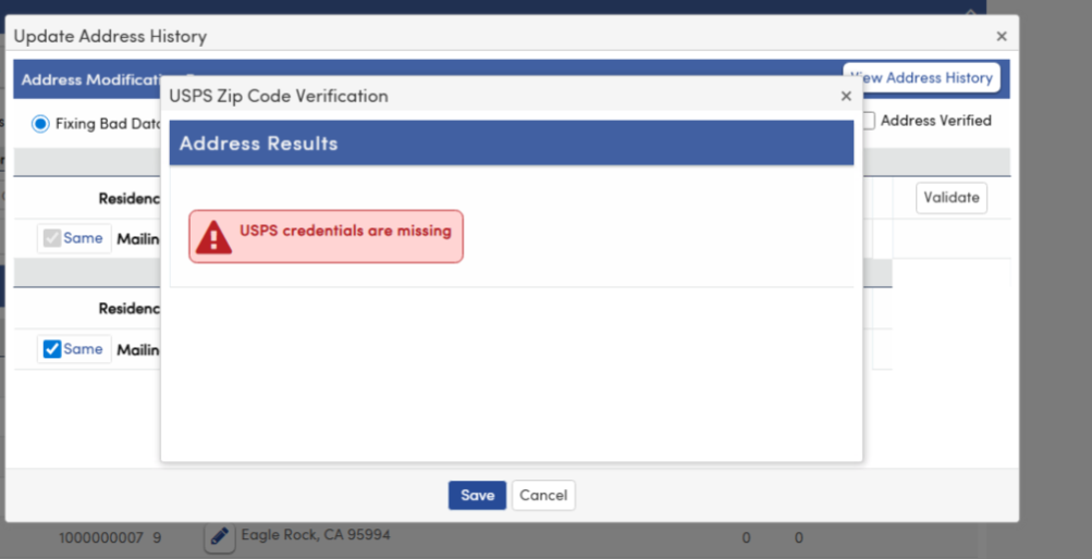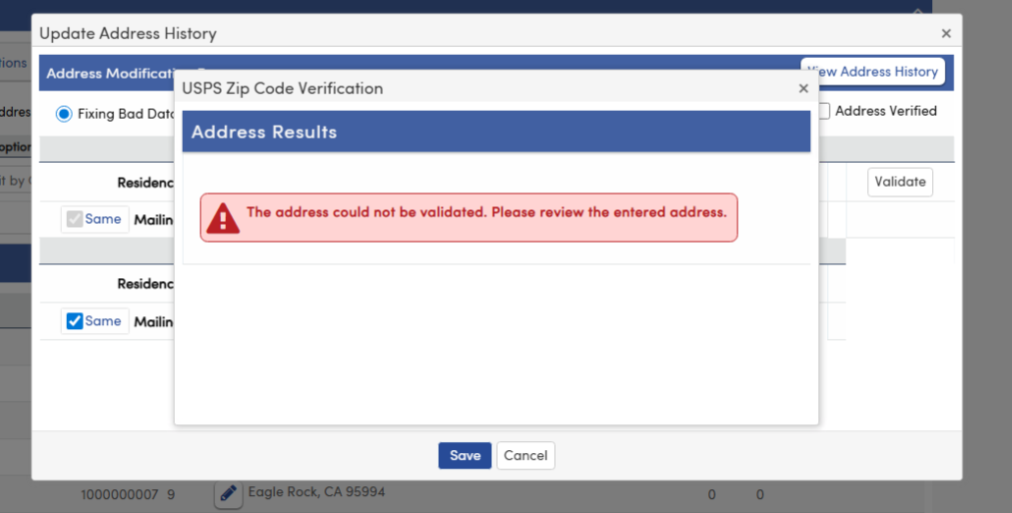 The following validation messages may appear during address verification using the USPS Lookup Tool: