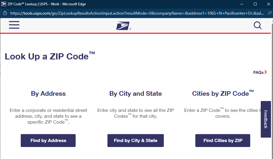 NOTE: If the USPS Address Verification option on the 3rd Party Connections page is not configured, the Zip Lookup tool will redirect users to the USPS Zip Code Lookup website, where the zip code can be looked up manually.