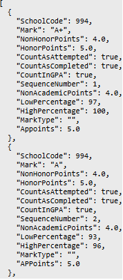 - This end point retrieves the Valid Marks (Grade Codes) from the GRC table