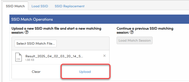 NOTE: Before beginning this process, ensure that no current SSID Identifier Match process is currently in progress. If an SSID Match process is already active, the user must wait until it is complete before starting a new Match Process. Both processes cannot run simultaneously.